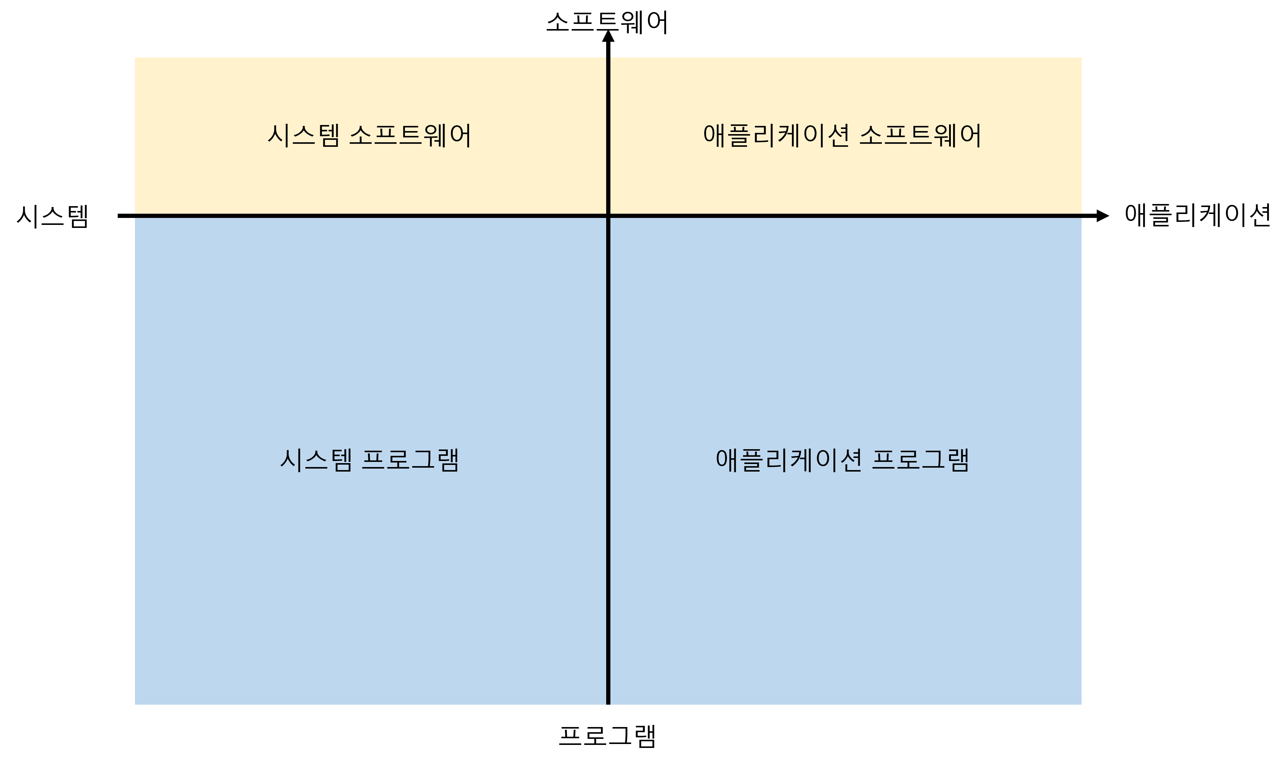 * 시스템 소프트웨어: 하드웨어를 동작, 관리(제어)하고 응용 소프트웨어를 실행하기 위한 플랫폼을 제공하는 소프트웨어